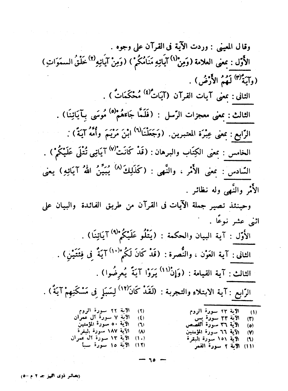 وحينئذ تصير جملة الآيات فى القرآن من طريق الفائدة والبيان على اثنى عشر نوعاً.