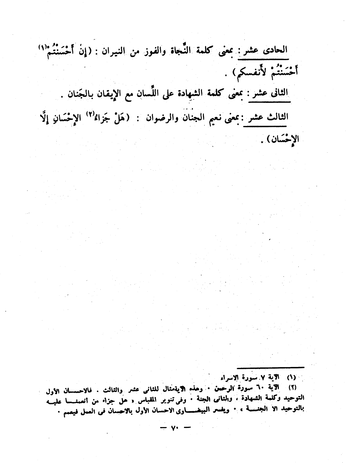 الحادى عشر: بمعنى كلمة النَّجاة والفوز من النيران: {إِنْ أَحْسَنْتُمْ أَحْسَنْتُمْ لأَنْفُسِكُمْ} .