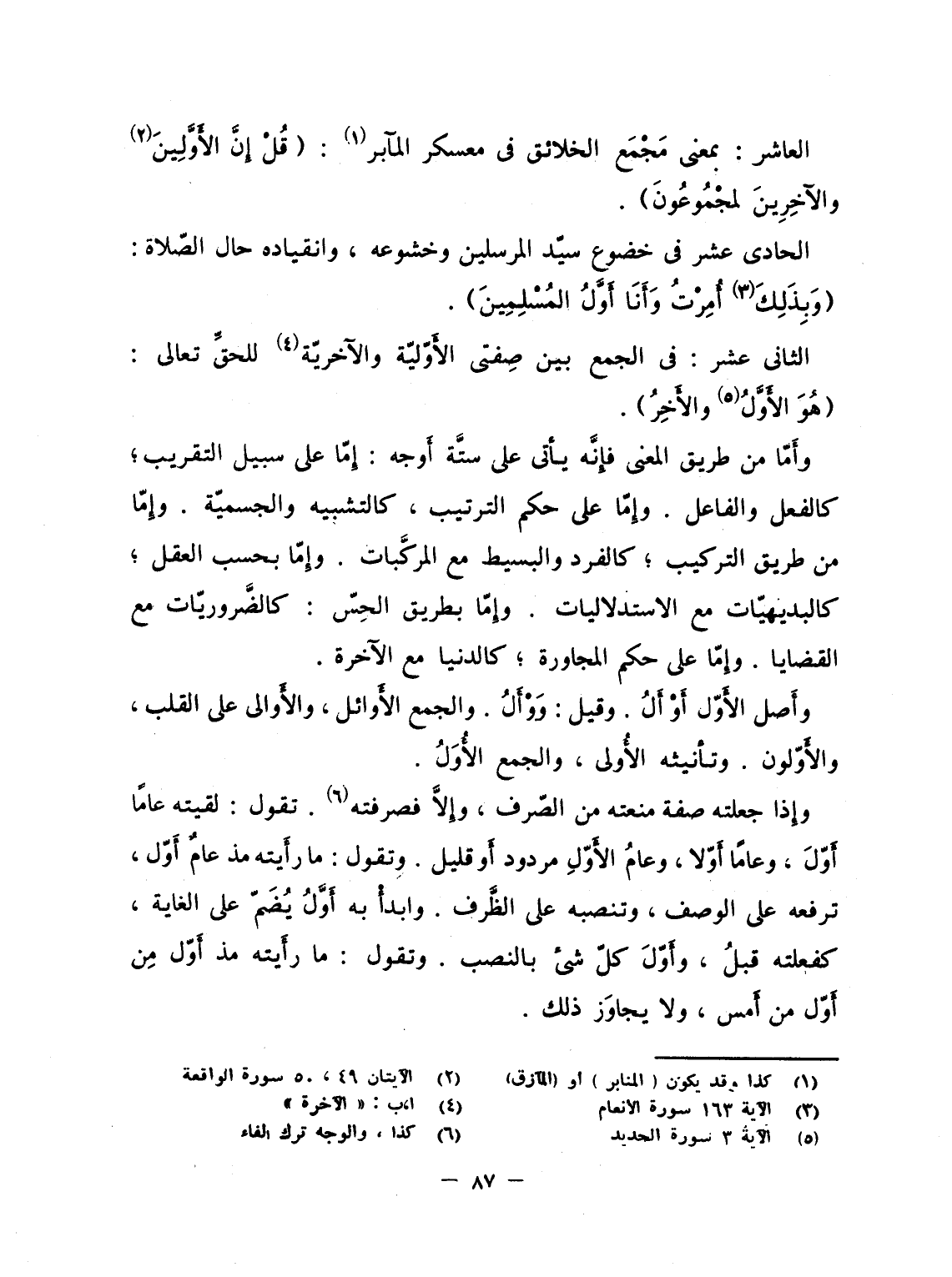 الثانى عشر: فى الجمع بين صِفتى الأَوّليّة والآخريّة للحقِّ تعالى: {هُوَ الأول والآخر} .