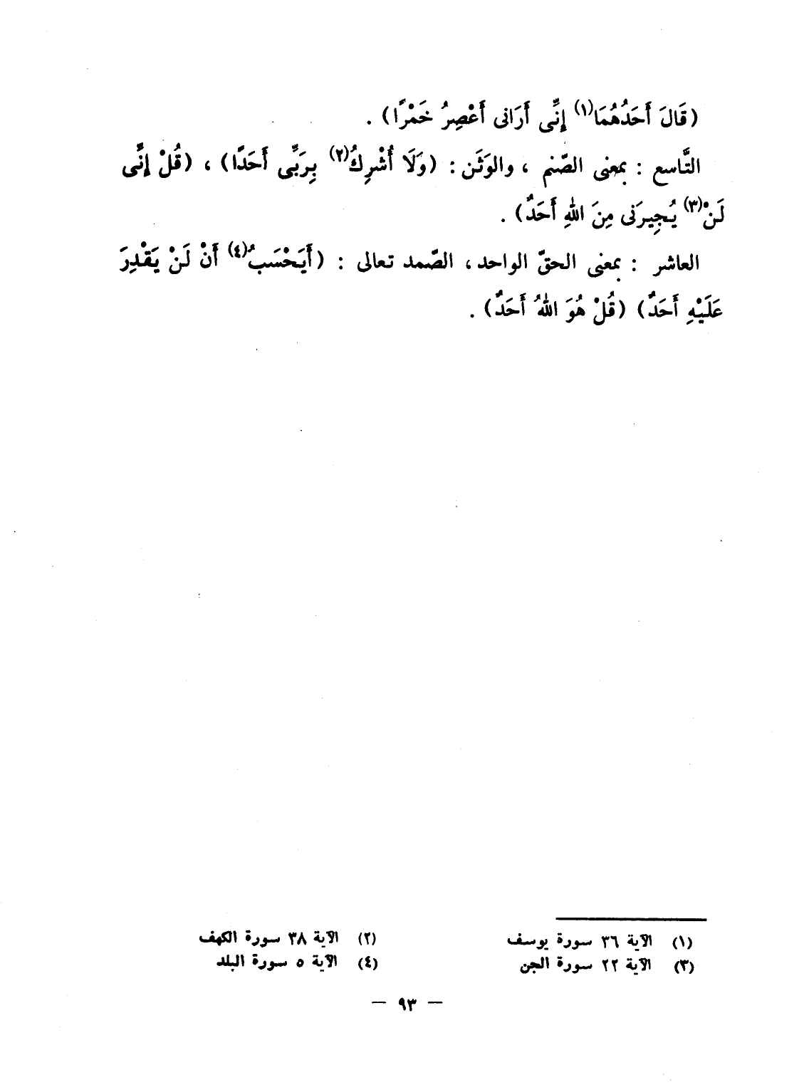 العاشر: بمعنى الحقّ الواحد، الصّمد تعالى: {أَيَحْسَبُ أَن لَّن يَقْدِرَ عَلَيْهِ أَحَدٌ} {قُلْ هُوَ اللهُ أَحَدٌ} .