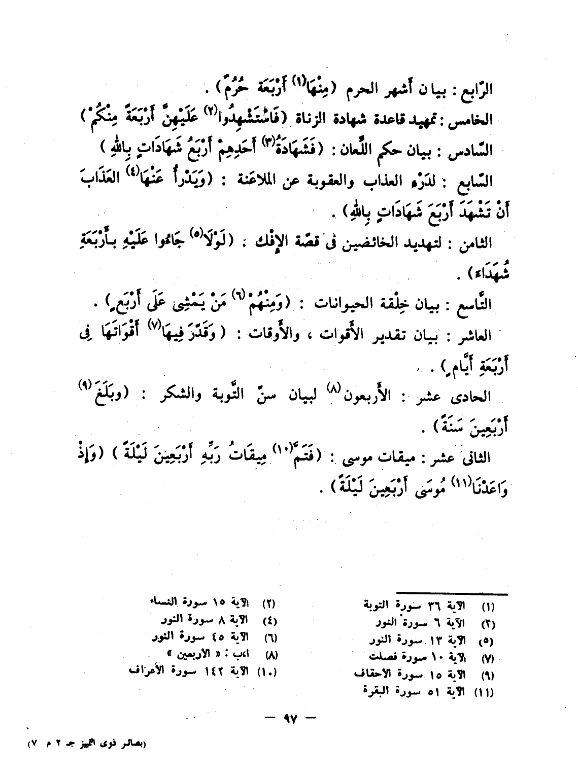 الثانى عشر: ميقات موسى: {فَتَمَّ مِيقَاتُ رَبِّهِ أَرْبَعِينَ لَيْلَةً} {وَإِذْ وَاعَدْنَا موسى أَرْبَعِينَ لَيْلَةً} .