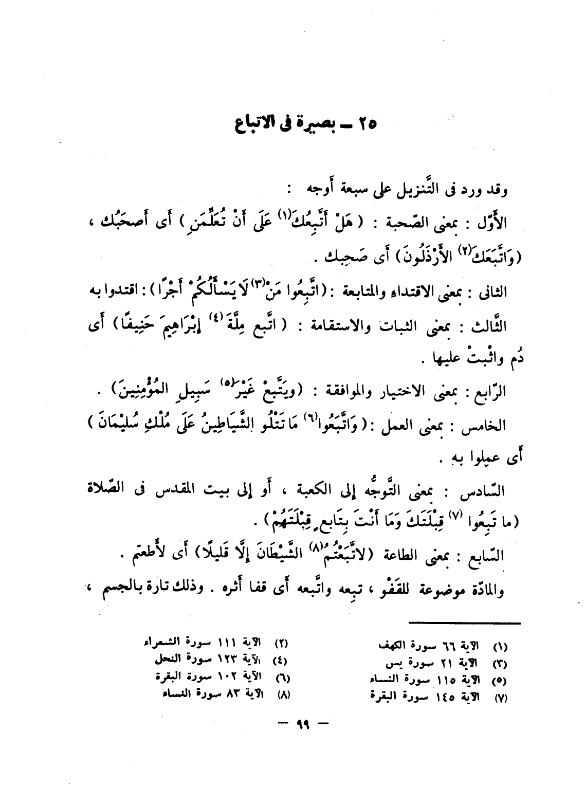 الأَوّل: بمعنى الصّحبة: {هَلْ أَتَّبِعُكَ على أَن تُعَلِّمَنِ} أَى أَصحَبُك، {واتبعك الأرذلون} أَى صَحِبك.