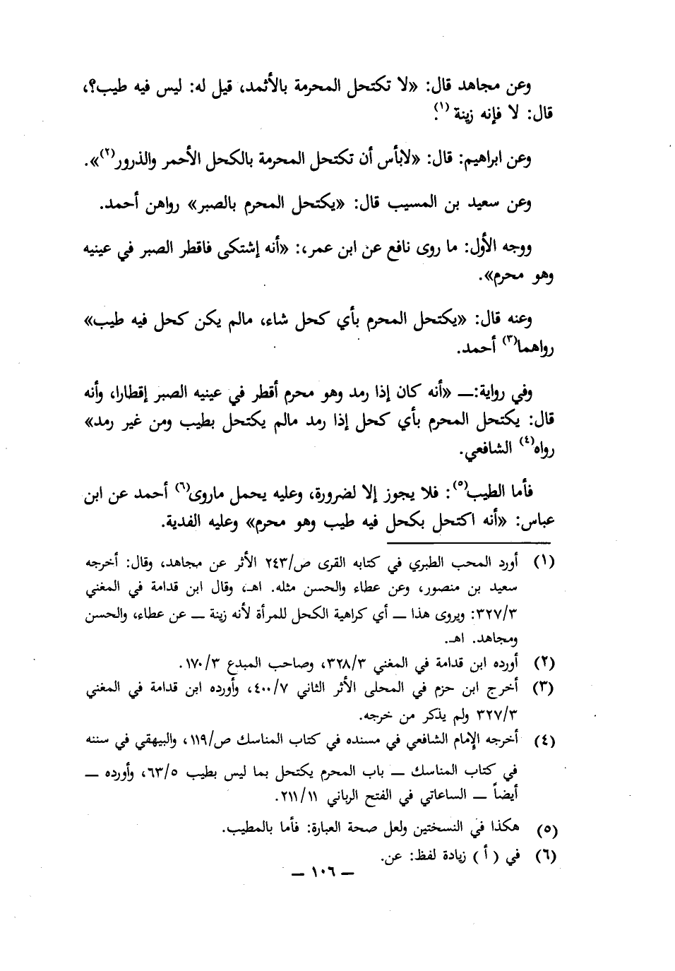 وَعَنْ سَعِيدِ بْنِ الْمُسَيَّبِ قَالَ: " يَكْتَحِلُ الْمُحْرِمُ بِالصَّبِرِ ". رَوَاهُنَّ أَحْمَدُ.