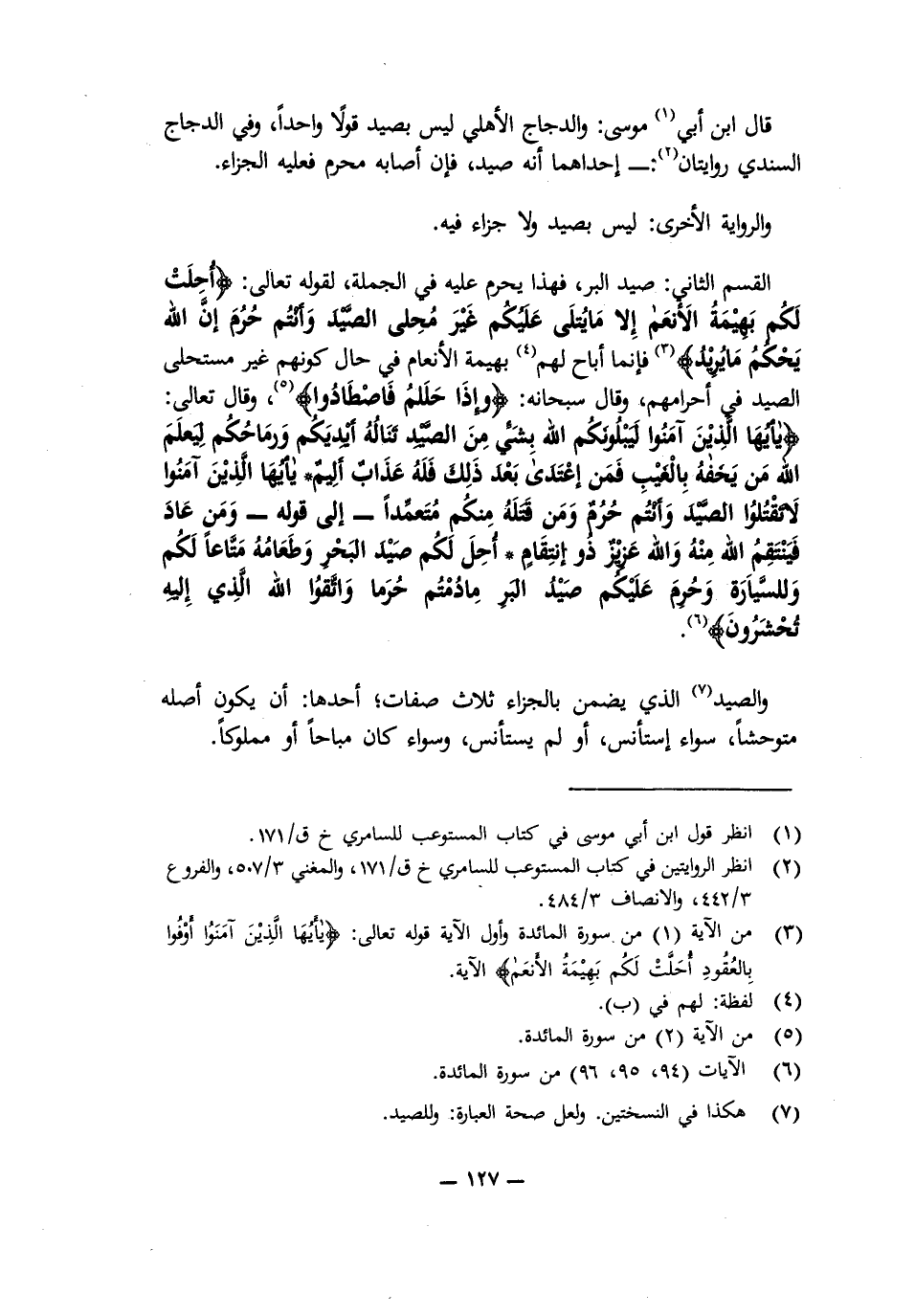 قَالَ ابْنُ أَبِي مُوسَى: " وَالدَّجَاجُ الْأَهْلِيُّ لَيْسَ بِصَيْدٍ قَوْلًا وَاحِدًا "، وَفِي الدَّجَاجِ السِّنْدِيِّ رِوَايَتَانِ: إِحْدَاهُمَا: أَنَّهُ صَيْدٌ، فَإِنْ أَصَابَهُ مُحْرِمٌ فَعَلَيْهِ الْجَزَاءُ.
