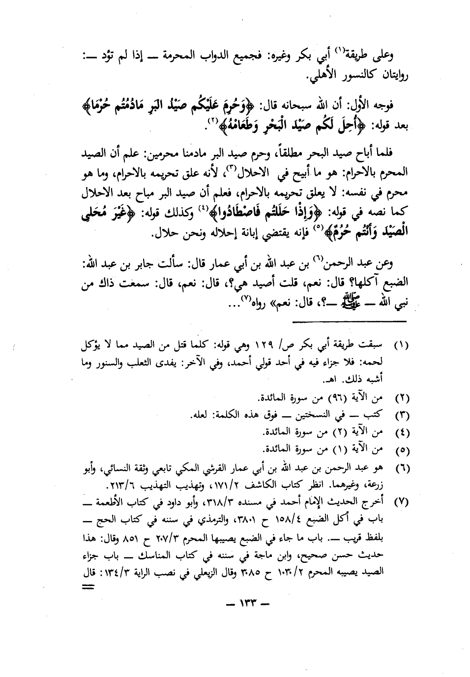 وَعَنْ عَبْدِ الرَّحْمَنِ بْنِ عَبْدِ اللَّهِ بْنِ أَبِي عَمَّارٍ قَالَ: «سَأَلْتُ جَابِرَ بْنَ عَبْدِ اللَّهِ: الضَّبُعُ آكُلُهَا؟ قَالَ: نَعَمْ. قُلْتُ: أَصَيْدٌ هِيَ؟ قَالَ: نَعَمْ، قَالَ: سَمِعْتَ ذَاكَ مِنْ نَبِيِّ اللَّهِ - صَلَّى اللَّهُ عَلَيْهِ وَسَلَّمَ -؟ قَالَ: نَعَمْ» ". رَوَاهُ ...