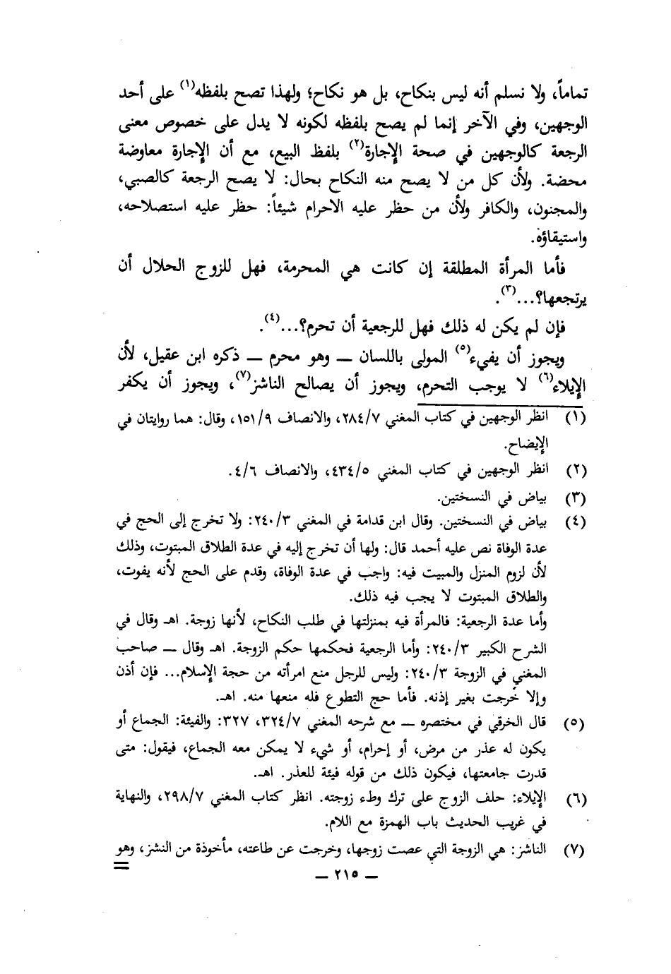 تَمَامًا، وَلَا نُسَلِّمُ أَنَّهُ لَيْسَ بِنِكَاحٍ بَلْ هُوَ نِكَاحٌ، وَلِهَذَا تَصِحُّ بِلَفْظِهِ عَلَى أَحَدِ الْوَجْهَيْنِ، وَفِي الْآخَرِ إِنَّمَا لَمْ يَصِحَّ بِلَفْظِهِ لِكَوْنِهِ لَا يَدُلُّ عَلَى خُصُوصِ مَعْنَى الرَّجْعَةِ، كَالْوَجْهَيْنِ فِي صِحَّةِ الْإِجَارَةِ بِلَفْظِ الْبَيْعِ مِنْ أَنَّ الْإِجَارَةَ مُعَاوَضَةٌ مَحْضَةٌ، وَلِأَنَّ كُلَّ مَنْ لَا يَصِحُّ مِنْهُ النِّكَاحُ بِحَالٍ لَا يَصِحُّ الرَّجْعَةُ كَالصَّبِيِّ وَالْمَجْنُونِ وَالْكَافِرِ، وَلِأَنَّ مَنْ حَظَرَ عَلَيْهِ الْإِحْرَامُ شَيْئًا حُظِرَ عَلَيْهِ اسْتِصْلَاحُهُ وَاسْتِبْقَاؤُهُ.