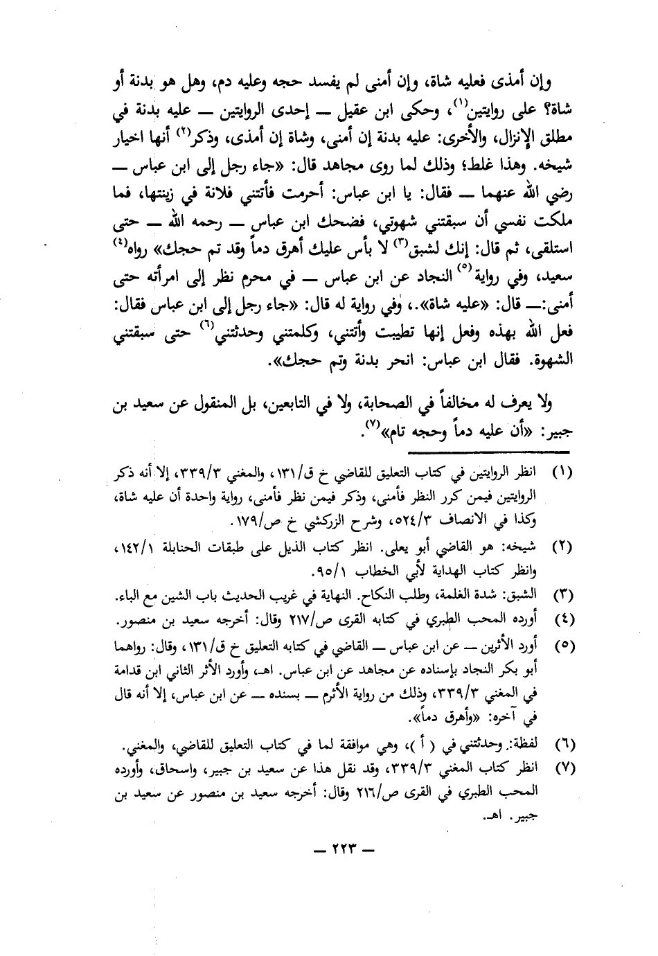 وَلَا نَعْرِفُ لَهُ مُخَالِفًا فِي الصَّحَابَةِ وَلَا فِي التَّابِعِينَ، بَلِ الْمَنْقُولُ عَنْ سَعِيدِ بْنِ جُبَيْرٍ " أَنَّ عَلَيْهِ دَمًا وَحَجُّهُ تَامٌّ ".