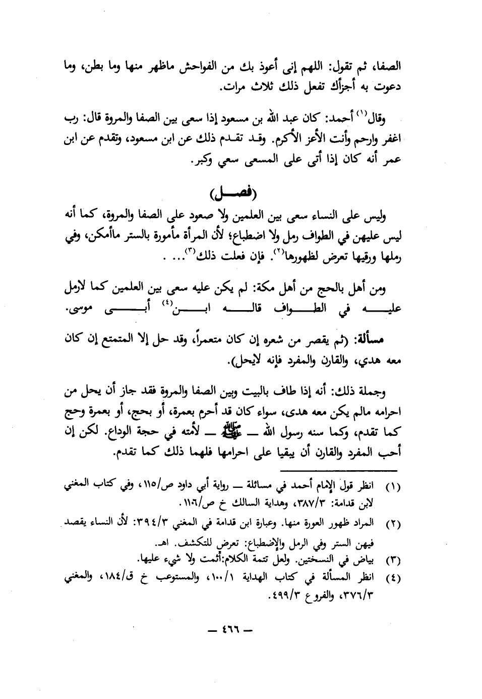 وَلَيْسَ عَلَى النِّسَاءِ سَعْيٌ بَيْنَ الْعَلَمَيْنِ وَلَا صُعُودٌ عَلَى الصَّفَا وَالْمَرْوَةِ، كَمَا أَنَّهُ لَيْسَ عَلَيْهِنَّ فِي الطَّوَافِ رَمَلٌ وَلَا اضْطِبَاعٌ ; لِأَنَّ الْمَرْأَةَ مَأْمُورَةٌ بِالسَّتْرِ مَا أَمْكَنَ، وَفِي رَمَلِهَا وَرُقِيِّهَا تَعَرُّضٌ لِظُهُورِهَا، فَإِنْ فَعَلَتْ ذَلِكَ ... .