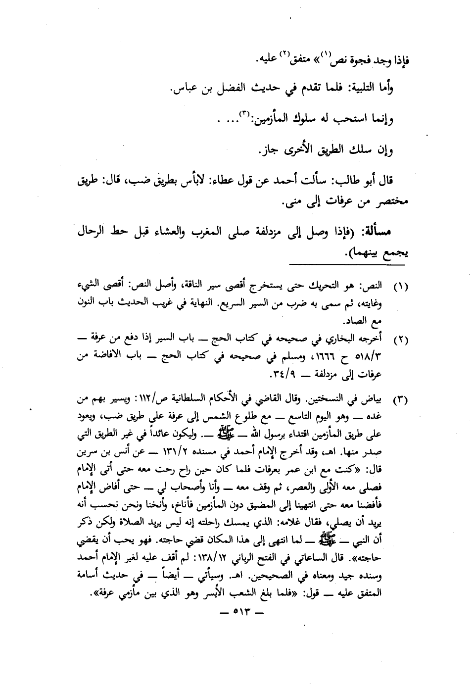 قَالَ أَبُو طَالِبٍ: سَأَلْتُ أَحْمَدَ عَنْ قَوْلِ عَطَاءٍ: لَا بَأْسَ بِطَرِيقِ ضَبٍّ، قَالَ: طَرِيقٌ مُخْتَصَرٌ مِنْ عَرَفَاتٍ إِلَى مِنًى.