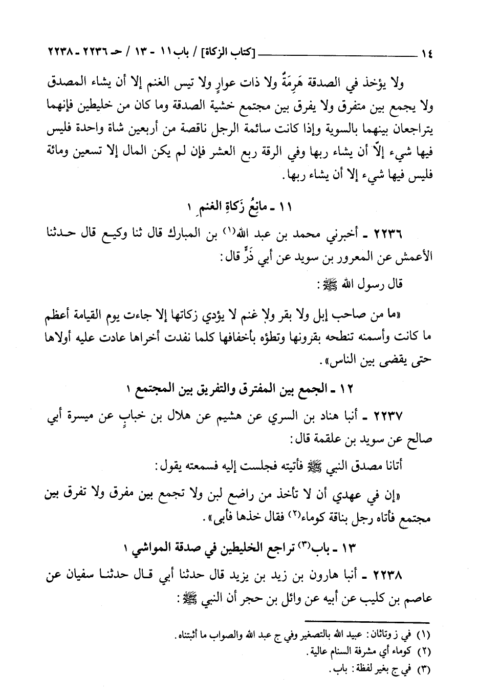 ( 13 باب تراجع الخليطين في صدقة المواشي )