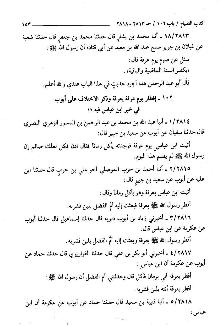 ( 102 إفطار يوم عرفة بعرفة وذكر الاختلاف على أيوب في خبر بن عباس فيه )