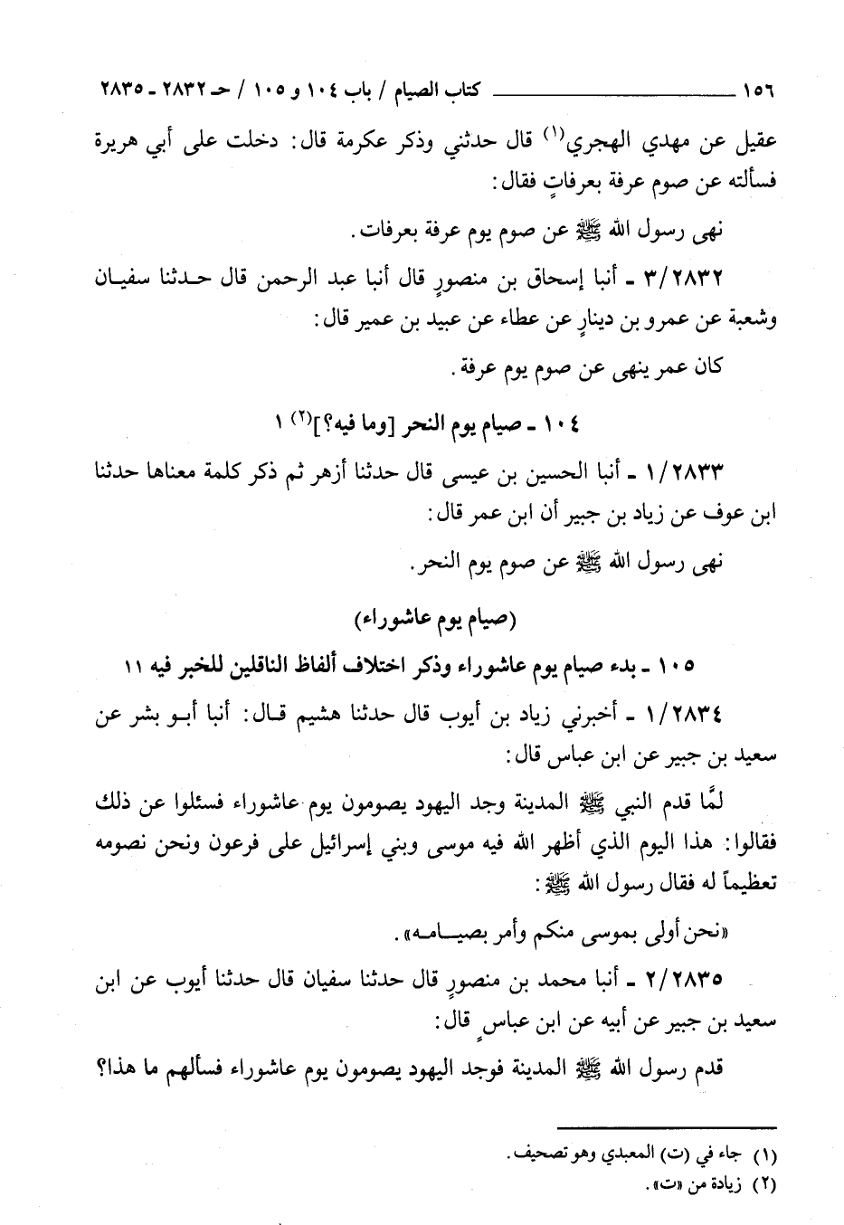 ( 105 بدء صيام يوم عاشوراء وذكر اختلاف ألفاظ الناقلين للخبر فيه )
