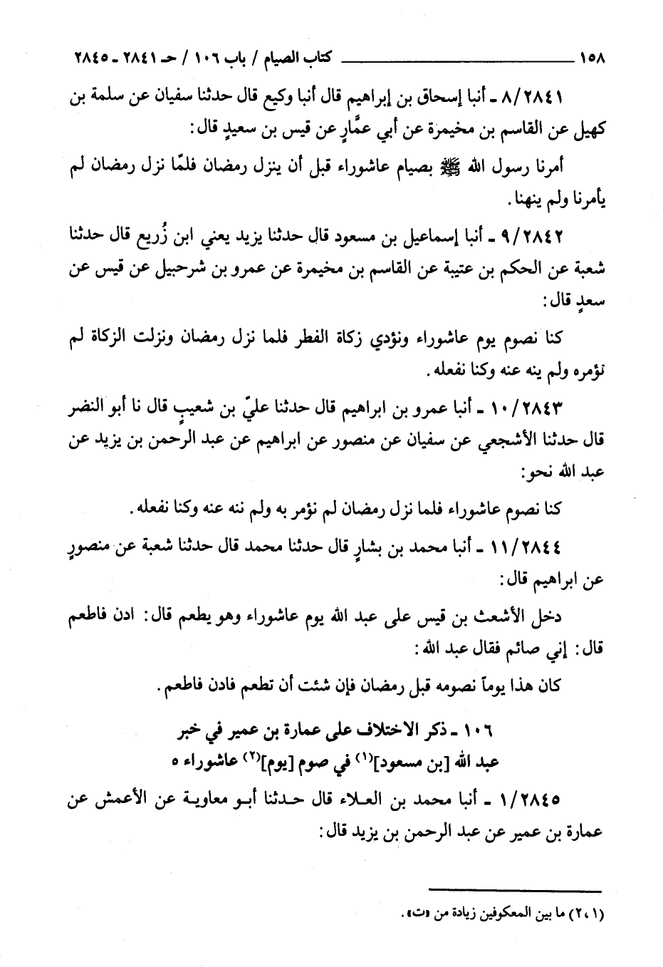 ( 106 ذكر الاختلاف على عمارة بن عمير في خبر عبد الله بن مسعود في صوم يوم عاشوراء )