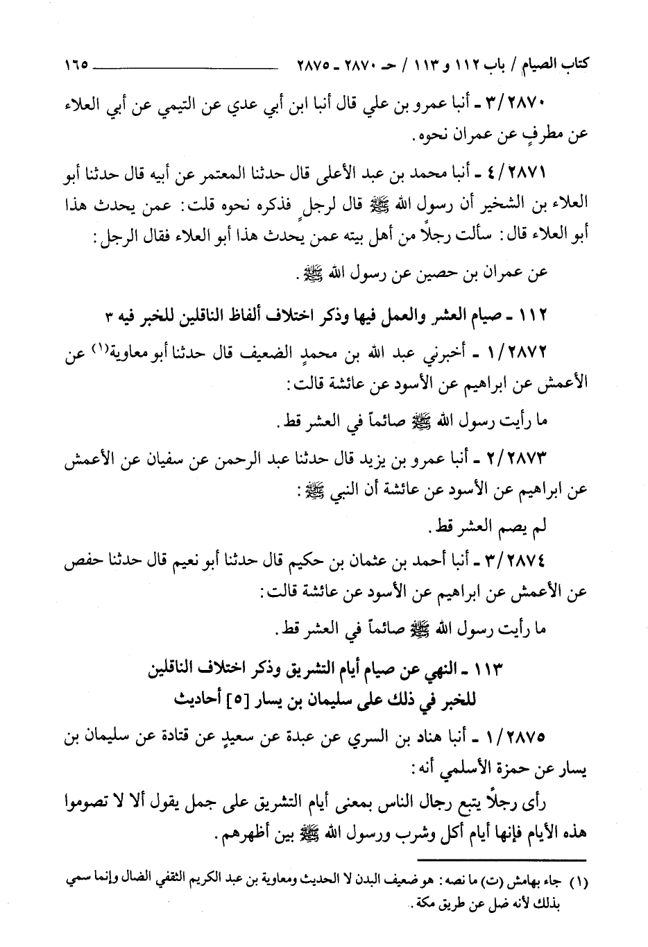 ( 112 صيام العشر والعمل فيها وذكر اختلاف ألفاظ الناقلين للخبر فيه )