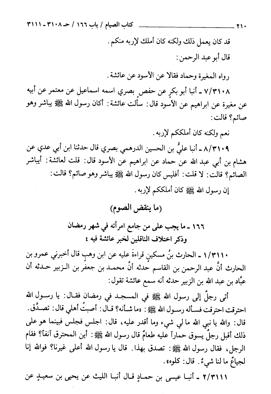 ( 166 ما يجب على من جامع امرأته في شهر رمضان وذكر اختلاف الناقلين لخبر عائشة فيه )