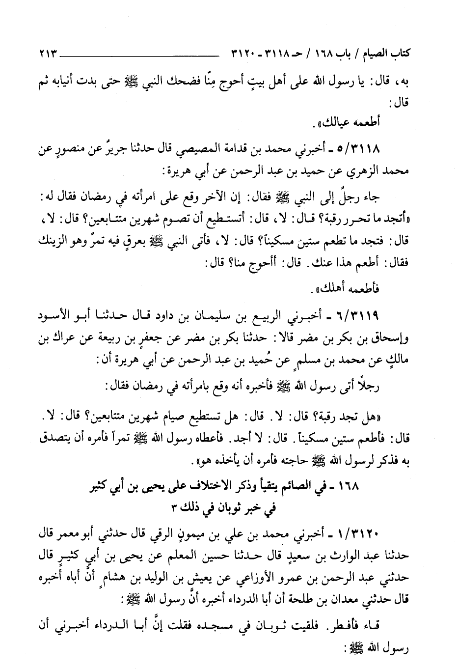 ( 168 في الصائم يتقيأ وذكر الاختلاف على يحيى بن أبي كثير في خبر ثوبان في ذلك )
