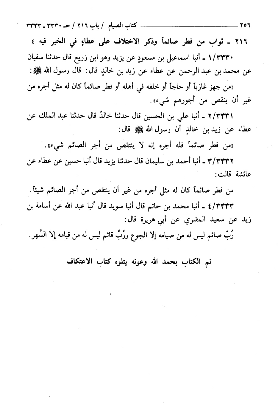 ( 216 ثواب من فطر صائما وذكر الاختلاف على عطاء في الخبر فيه )