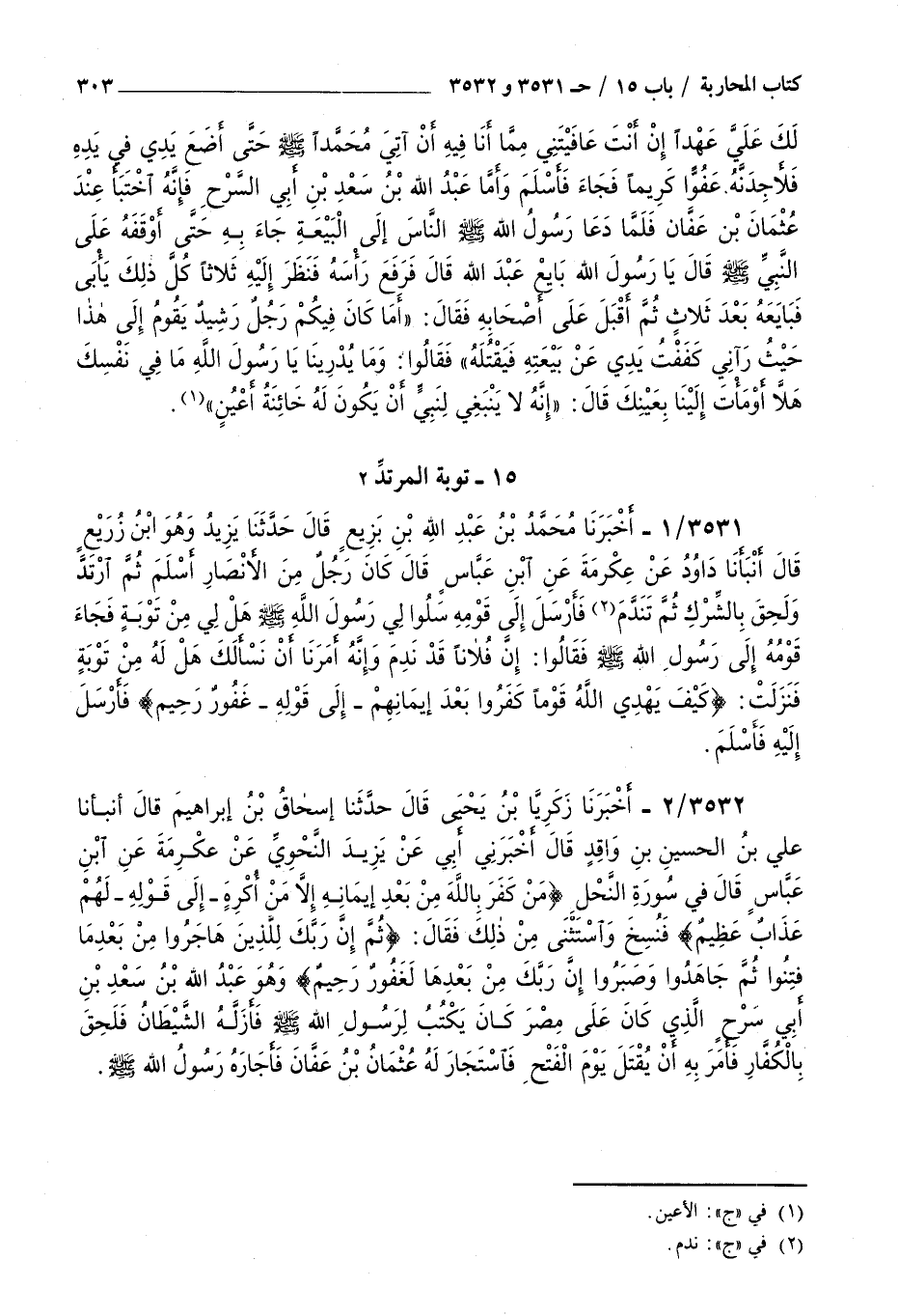 3532 - أخبرنا زكريا بن يحيى قال حدثنا إسحاق بن إبراهيم قال أنبأنا علي بن الحسين بن واقد قال أخبرني أبي عن يزيد النحوي عن عكرمة عن بن عباس قال : في سورة النحل من كفر بالله من بعد إيمانه إلا من أكره إلى قوله لهم عذاب عظيم فنسخ واستثنى من ذلك فقال ثم إن ربك للذين هاجروا من بعدما فتنوا ثم جاهدوا وصبروا إن ربك من بعدها لغفور رحيم وهو عبد الله بن سعد بن أبي سرح الذي كان على مصر كان يكتب لرسول الله صلى الله عليه و سلم فأزله الشيطان فلحق بالكفار فأمر به أن يقتل يوم الفتح فاستجار له عثمان بن عفان فأجاره رسول الله صلى الله عليه و سلم