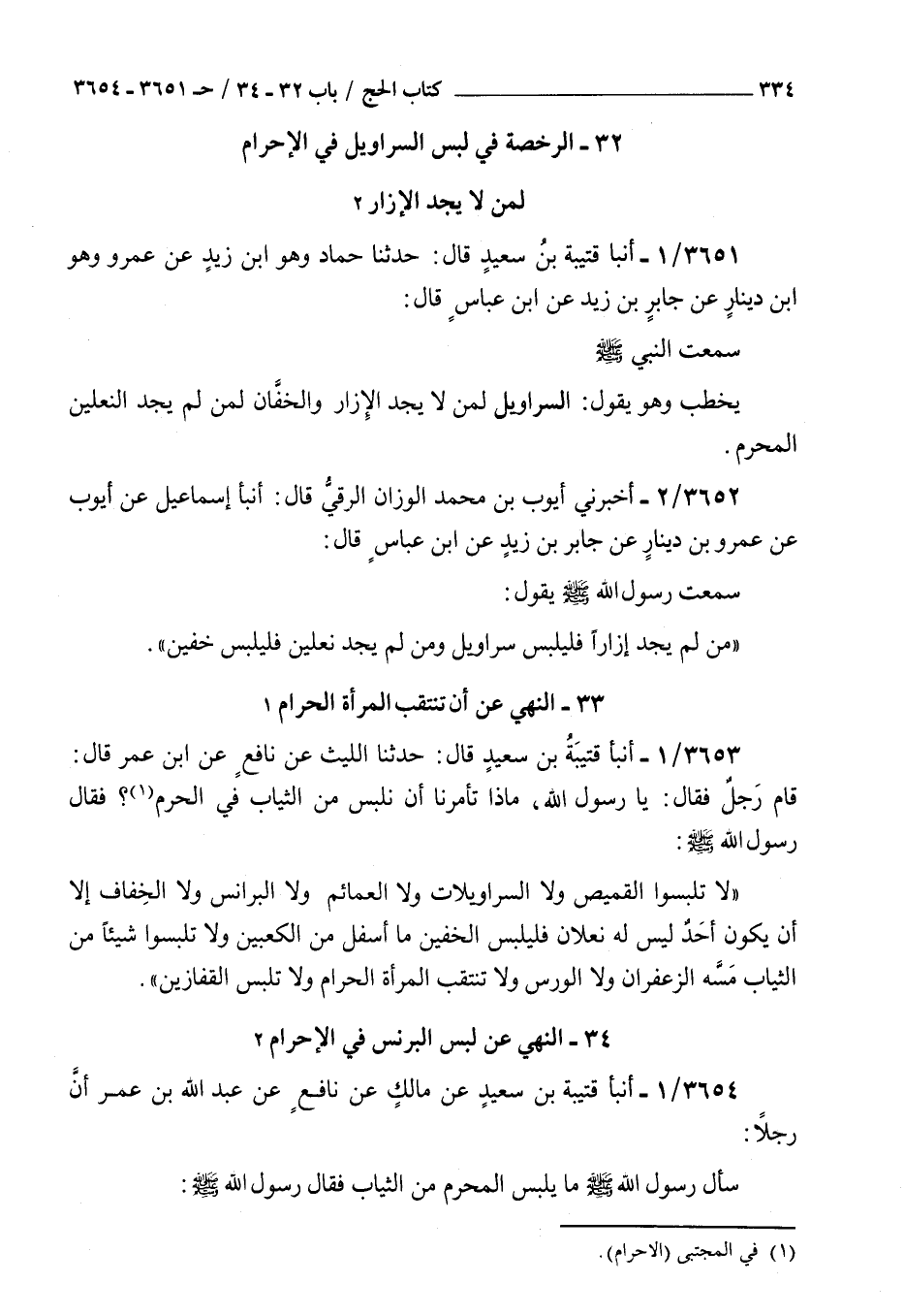 ( 32 الرخصة في لبس السراويل في الإحرام لمن لا يجد الإزار )