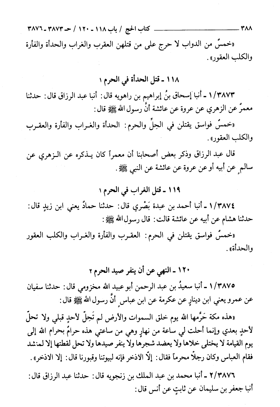 ( 118 قتل الحدأة في الحرم )