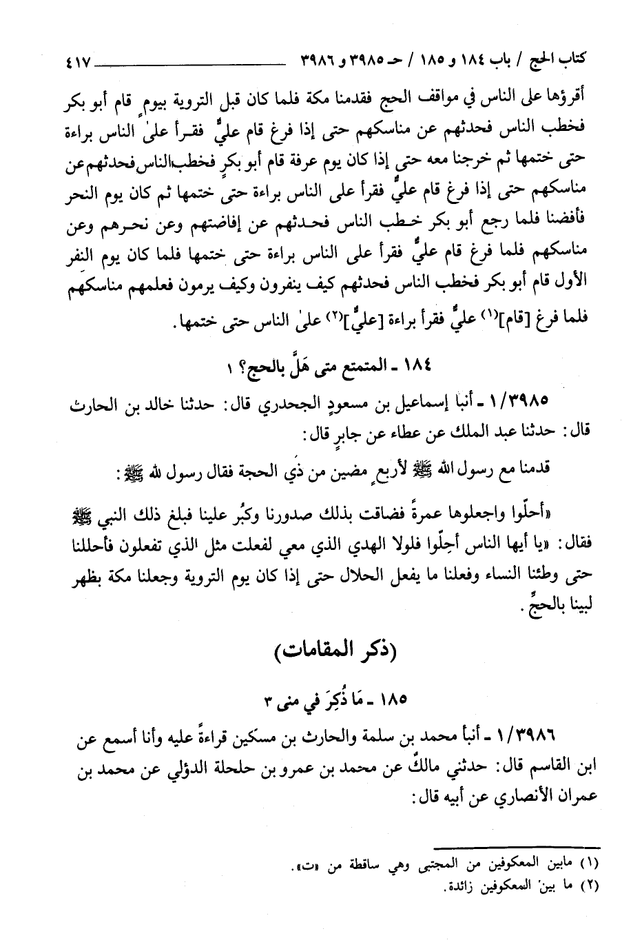 3985 - أنبأ إسماعيل بن مسعود الجحدري قال حدثنا خالد بن الحارث قال حدثنا عبد الملك عن عطاء عن جابر قال : قدمنا مع رسول الله صلى الله عليه و سلم لأربع مضين من ذي الحجة فقال رسول الله صلى الله عليه و سلم أحلوا واجعلوها عمرة فضاقت بذلك صدورنا وكبر علينا فبلغ ذلك النبي صلى الله عليه و سلم فقال يا أيها الناس أحلوا فلولا الهدي الذي معي لفعلت مثل الذي تفعلون فأحللنا حتى وطئنا النساء وفعلنا ما يفعل الحلال حتى إذا كان يوم التروية وجعلنا مكة بظهر لبينا بالحج