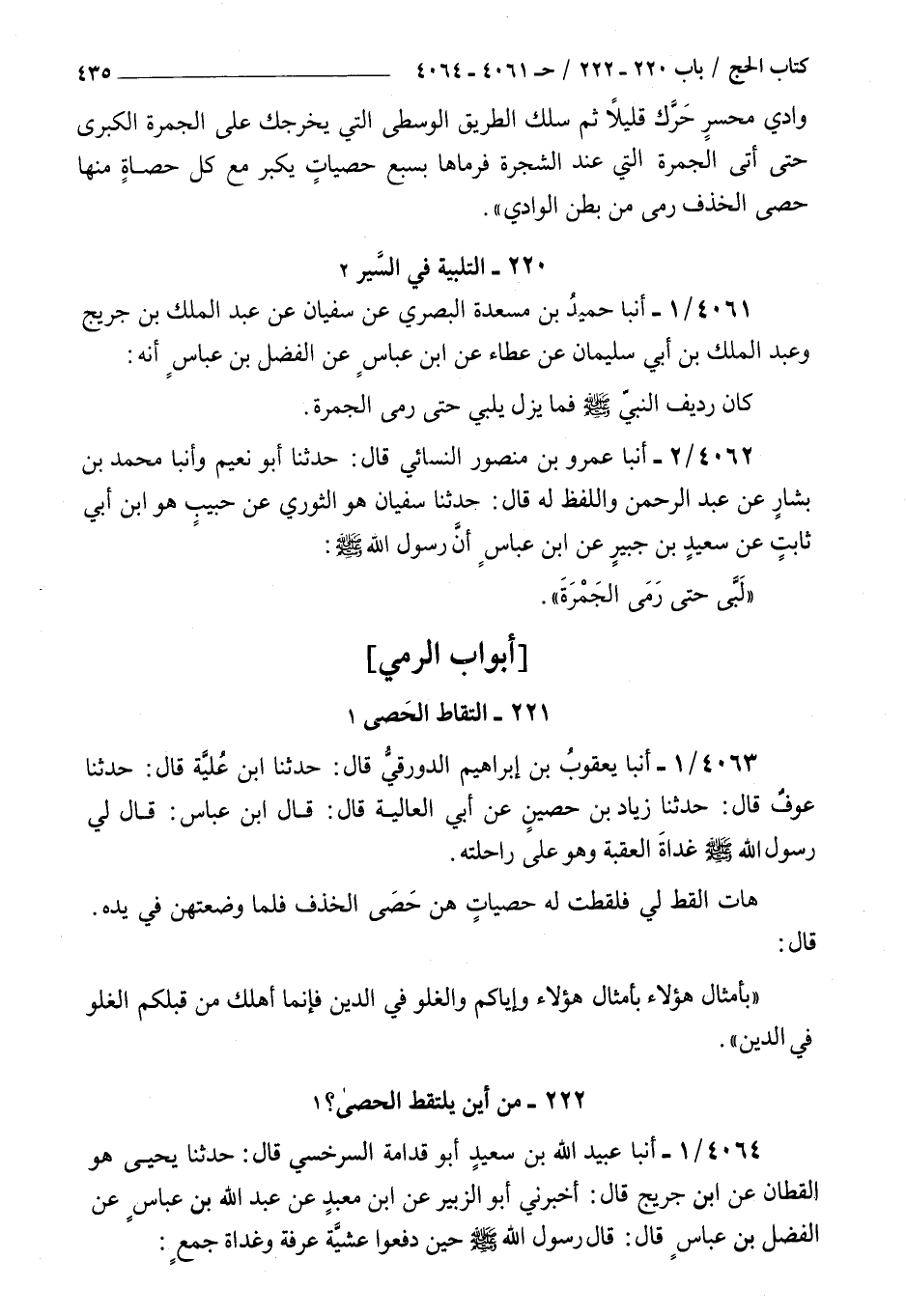 4061 - أنبأ حميد بن مسعدة البصري عن سفيان عن عبد الملك بن جريج وعبد الملك بن أبي سليمان عن عطاء عن بن عباس عن الفضل بن عباس أنه : كان رديف النبي صلى الله عليه و سلم فما يزل يلبي حتى رمى الجمرة
