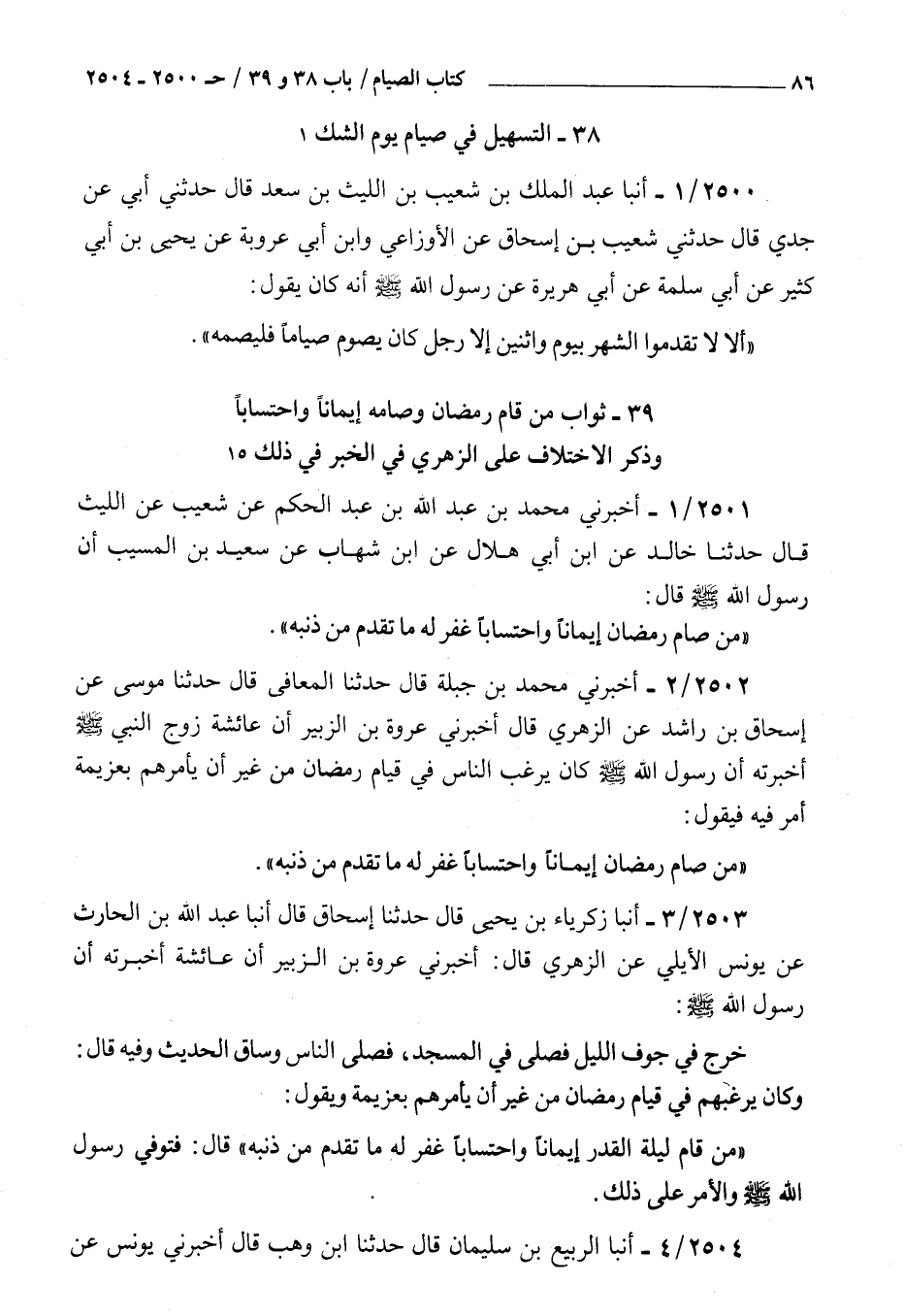 ( 39 ثواب من قام رمضان وصامه إيمانا واحتسابا وذكر الاختلاف على الزهري في الخبر في ذلك )
