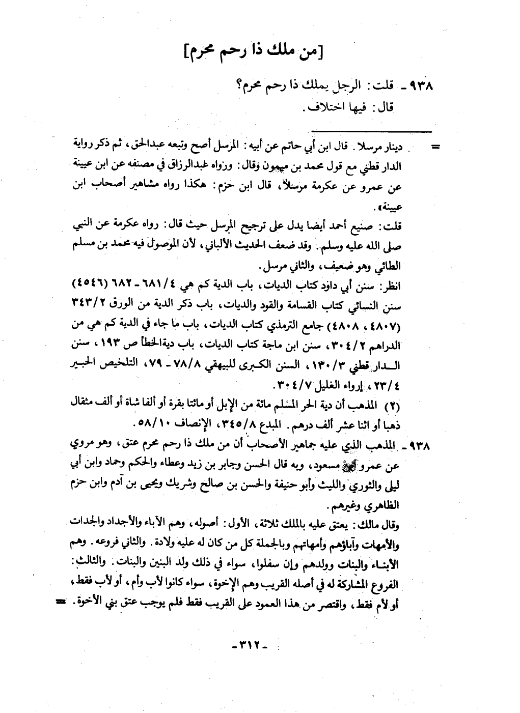 ٩٣٨ - قلت الرجل يملك ذَا رحم محرم قَالَ فِيهَا اخْتِلَاف