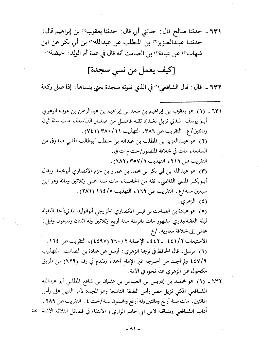 ٦٣١ - حَدثنَا صَالح قَالَ حَدثنِي أبي قَالَ حَدثنَا يَعْقُوب بن إِبْرَاهِيم قَالَ حَدثنَا عبد الْعَزِيز بن الْمطلب عَن عبد الله بن أبي بكر عَن ابْن شهَاب عَن عبَادَة بن الصَّامِت أَنه قَالَ فِي عدَّة أم الْوَلَد حَيْضَة