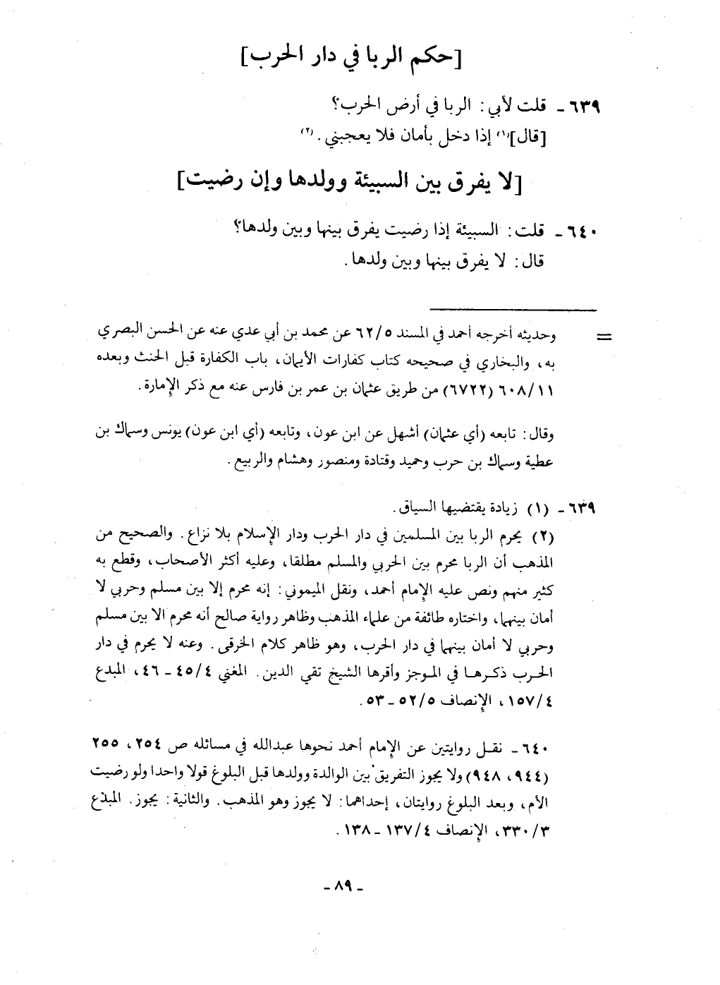 ٦٣٩ - قلت لأبي الرِّبَا فِي أَرض الْحَرْب قَالَ إِذا دخل بِأَمَان فَلَا يُعجبنِي