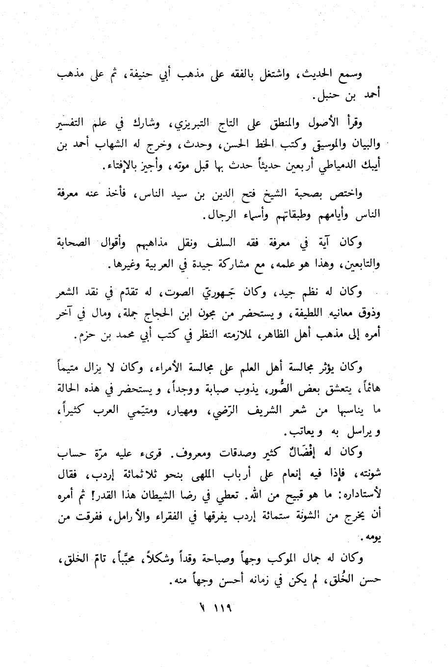 وكان آية في معرفة فقه السلف ونقل مذاهبهم وأقوال الصحابة والتابعين، وهذا هو علمه، مع مشاركة جيدة في العربية وغيرها.