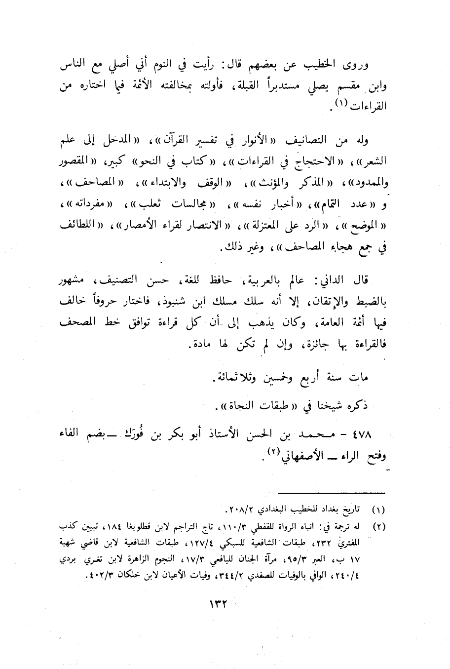 478 - محمد بن الحسن الأستاذ أبو بكر بن فورك- بضم الفاء وفتح الراء- الأصفهاني (¬2).