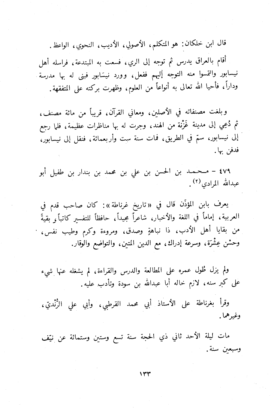479 - محمد بن الحسن بن علي بن محمد بن بندار بن طفيل أبو عبد الله المرادي.