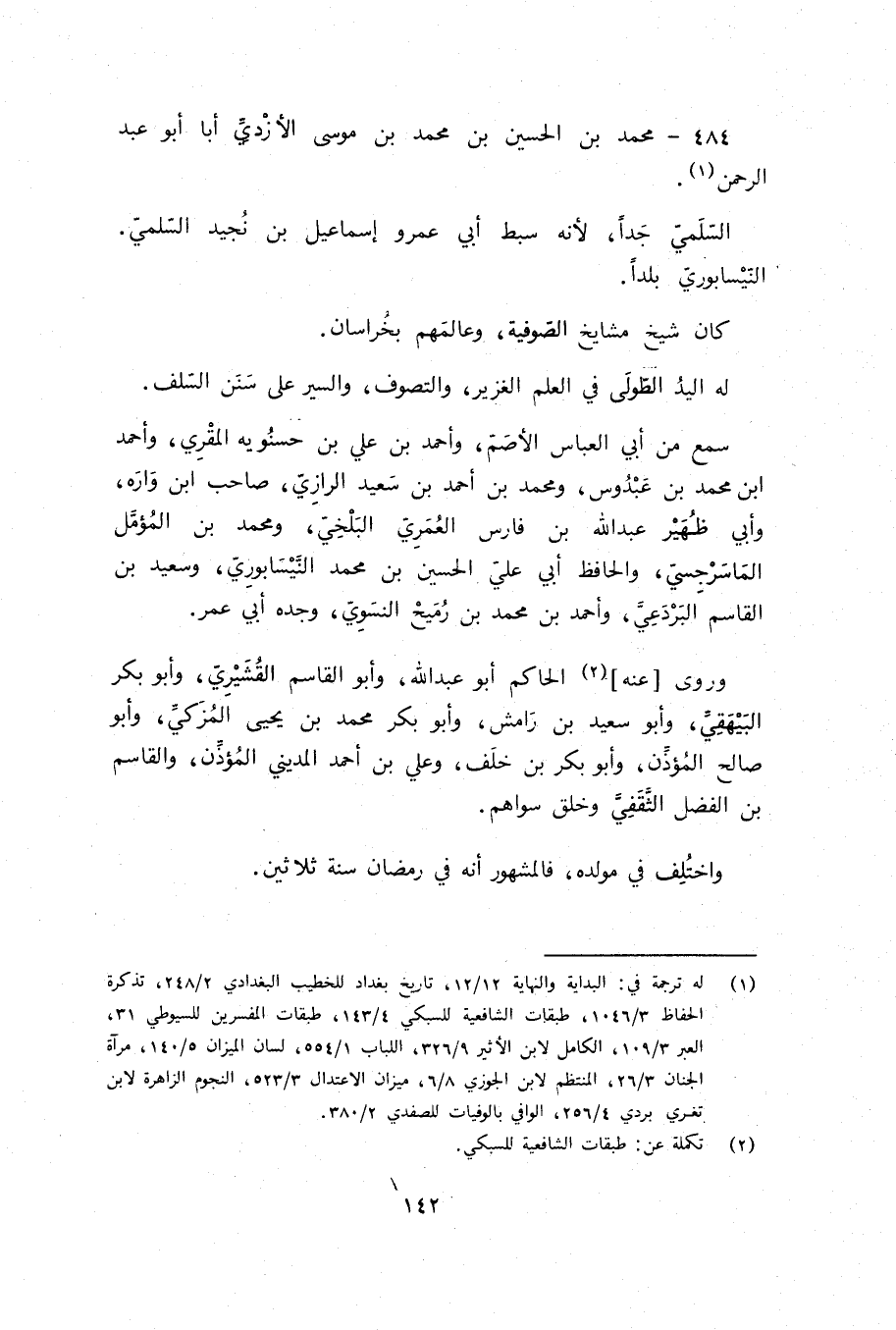 484 - محمد بن الحسين بن محمد بن موسى الأزديّ أبا أبو عبد الرحمن (¬1).