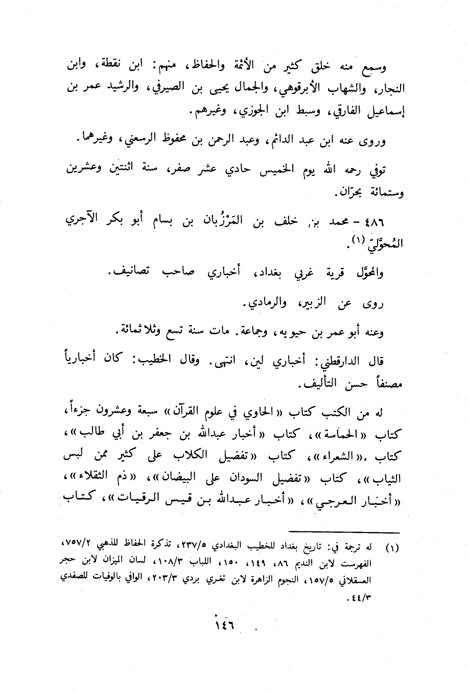 (¬1) له ترجمة في: تاريخ بغداد للخطيب البغدادي 5/ 237، تذكرة الحفاظ للذهبي 2/ 757، الفهرست لابن النديم 86، 149، 150، اللباب 3/ 108، لسان الميزان لابن حجر العسقلاني 5/ 157، النجوم الزاهرة لابن تغري بردي 3/ 203، الوافي بالوفيات للصفدي 3/ 44.