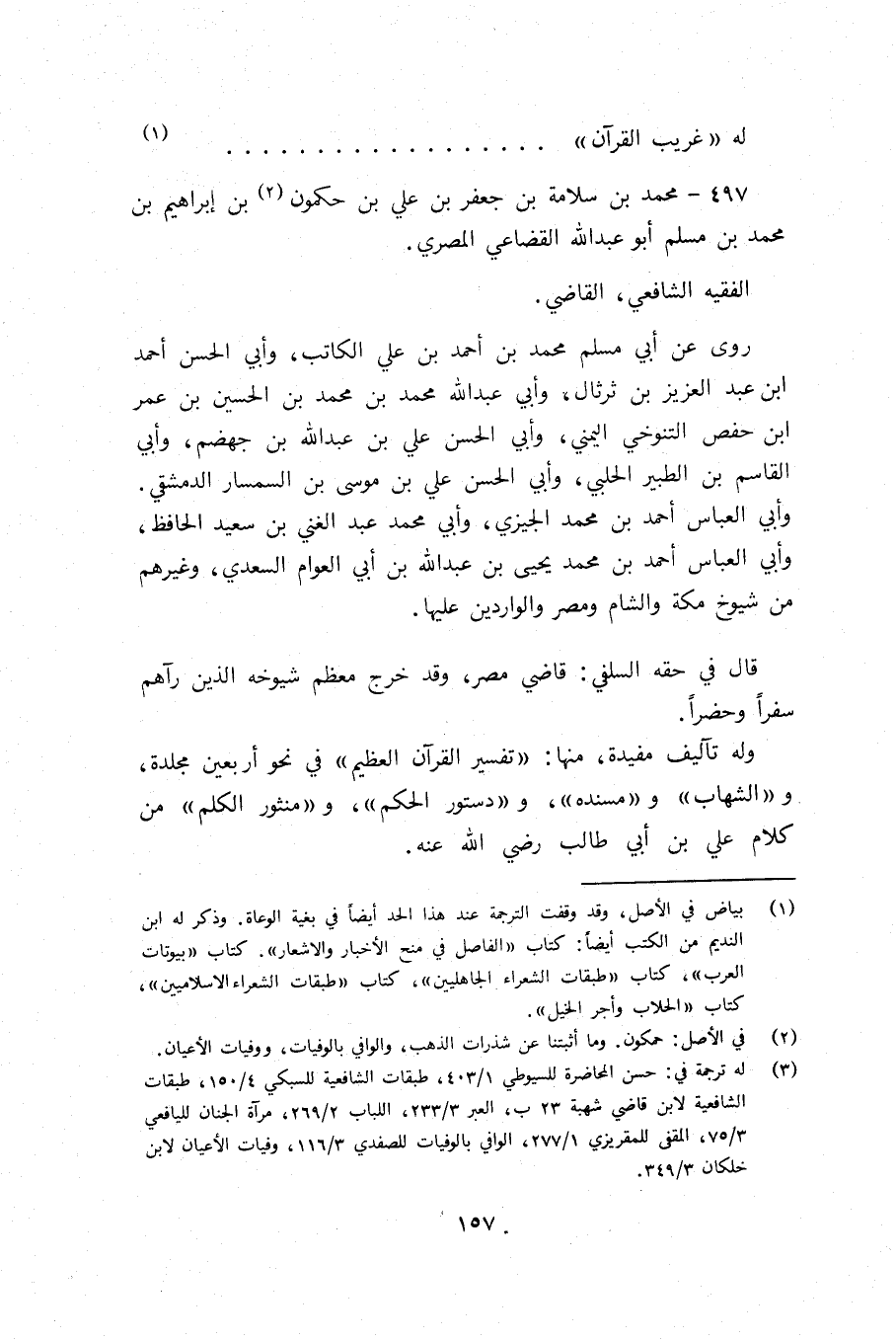 497 - محمد بن سلامة بن جعفر بن علي بن حكمون (¬2) بن إبراهيم بن محمد بن مسلم أبو عبد الله القضاعي المصري.