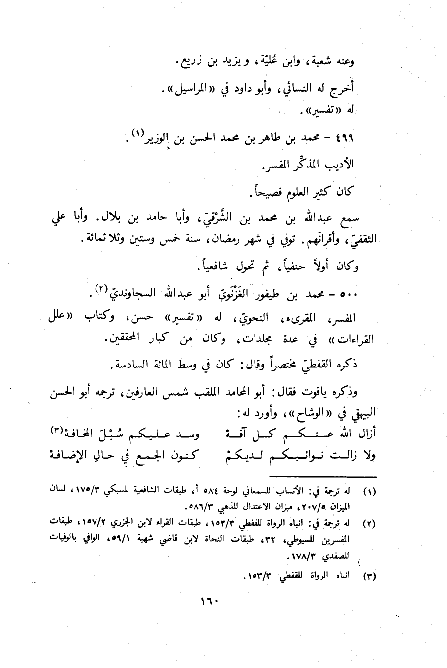(¬2) له ترجمة في: انباه الرواة للقفطي 3/ 153، طبقات القراء لابن الجزري 2/ 157، طبقات المفسرين للسيوطي، 32، طبقات النحاة لابن قاضي شهبة 1/ 59، الوافي بالوفيات للصفدي 3/ 178.