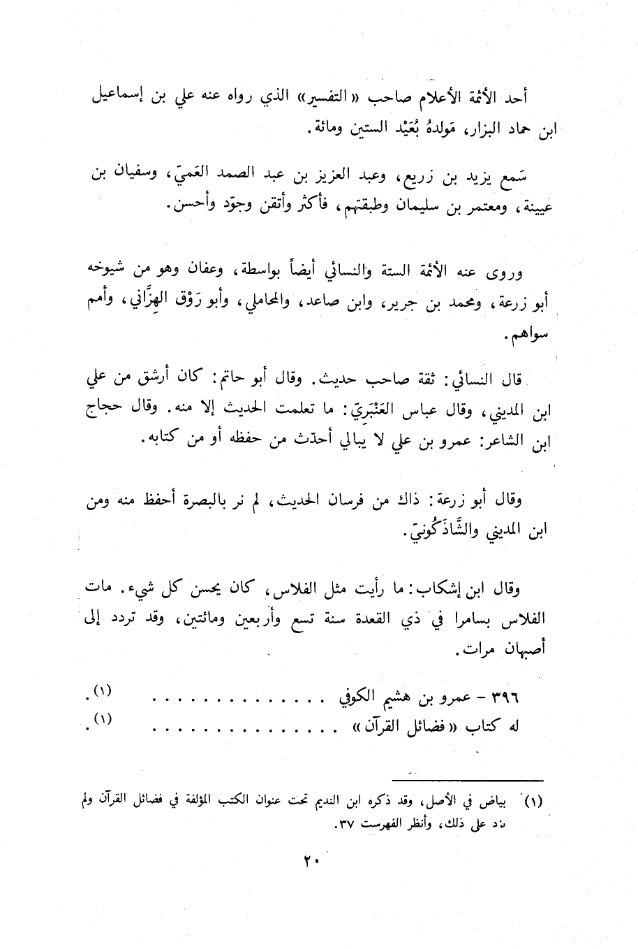 (¬2) بياض في الأصل، وقد ذكره ابن النديم تحت عنوان الكتب المؤلفة في فضائل القرآن ولم يزد على ذلك، وأنظر الفهرست 37.