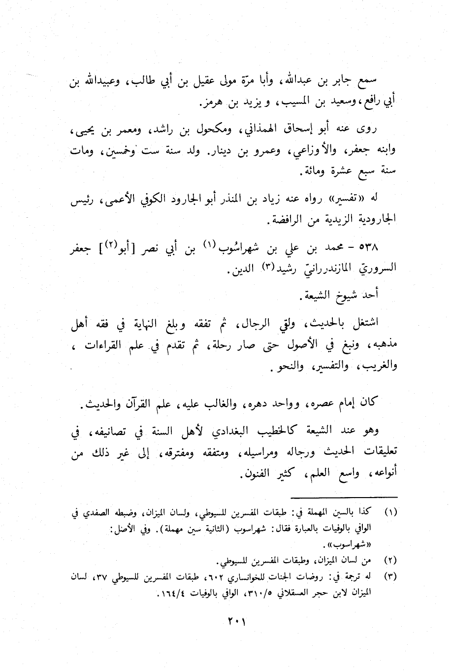(¬3) له ترجمة في: روضات الجنات للخوانساري 602، طبقات المفسرين للسيوطي 37، لسان الميزان لابن حجر العسقلاني 5/ 310، الوافي بالوفيات 4/ 164.