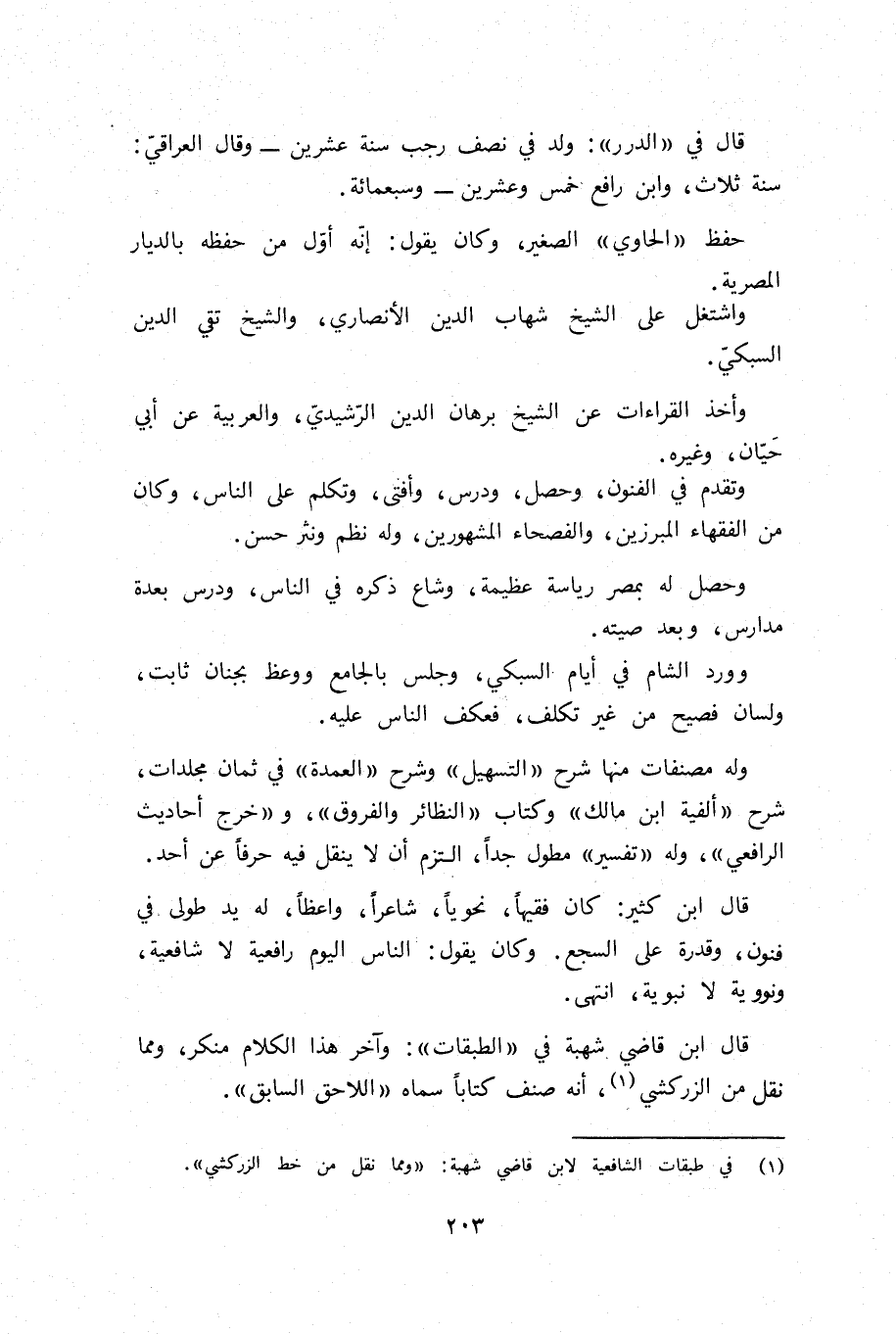 (¬1) في طبقات الشافعية لابن قاضي شهبة: «ومما نقل من خط الزركشي».