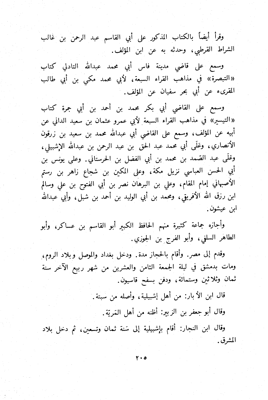 وقرأ أيضا بالكتاب المذكور على أبي القاسم عبد الرحمن بن غالب الشراط القرطبي، وحدثه به عن ابن المؤلف.