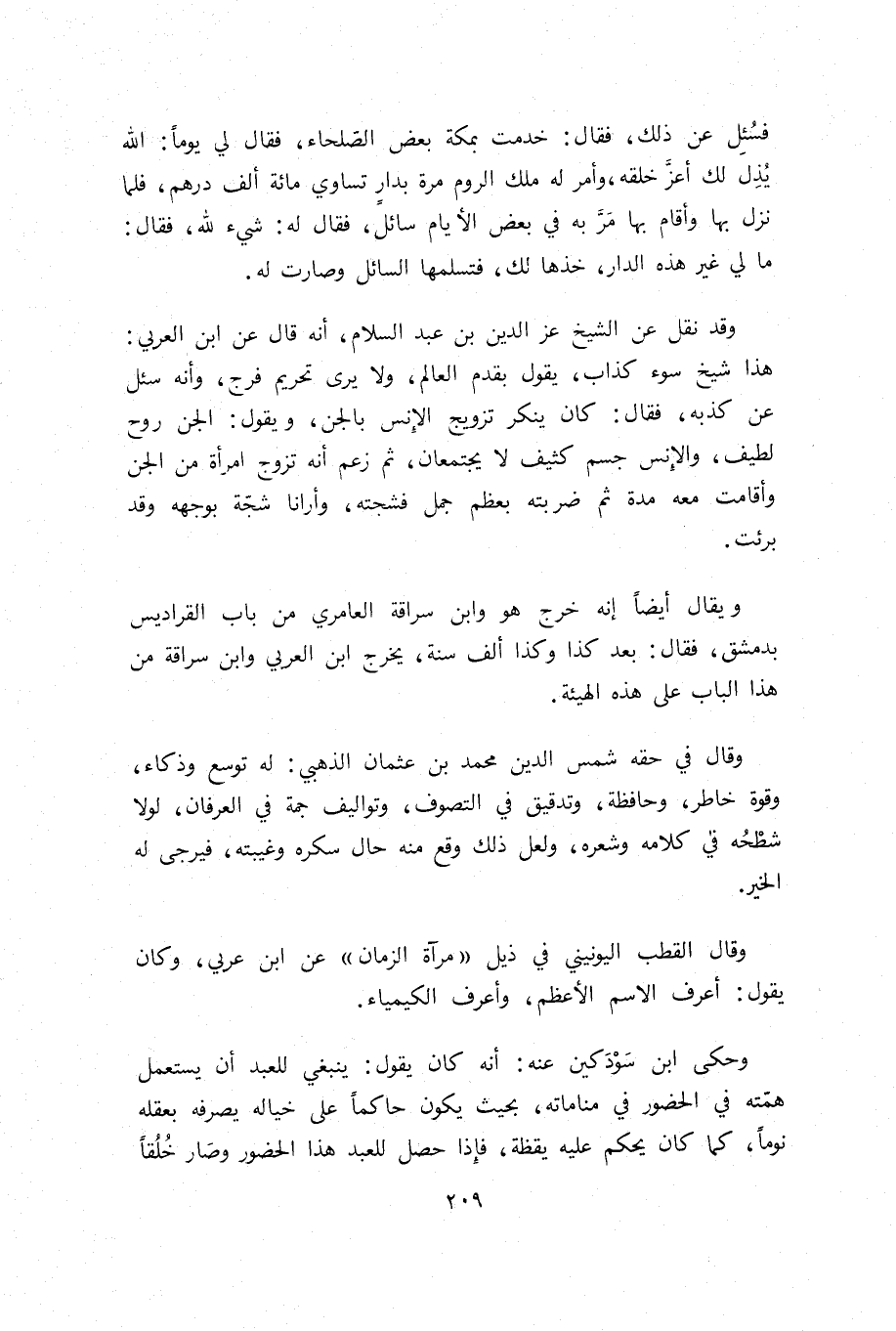 وقال القطب اليونيني في ذيل «مرآة الزمان» عن ابن عربي، وكان يقول: أعرف الاسم الأعظم، وأعرف الكيمياء.