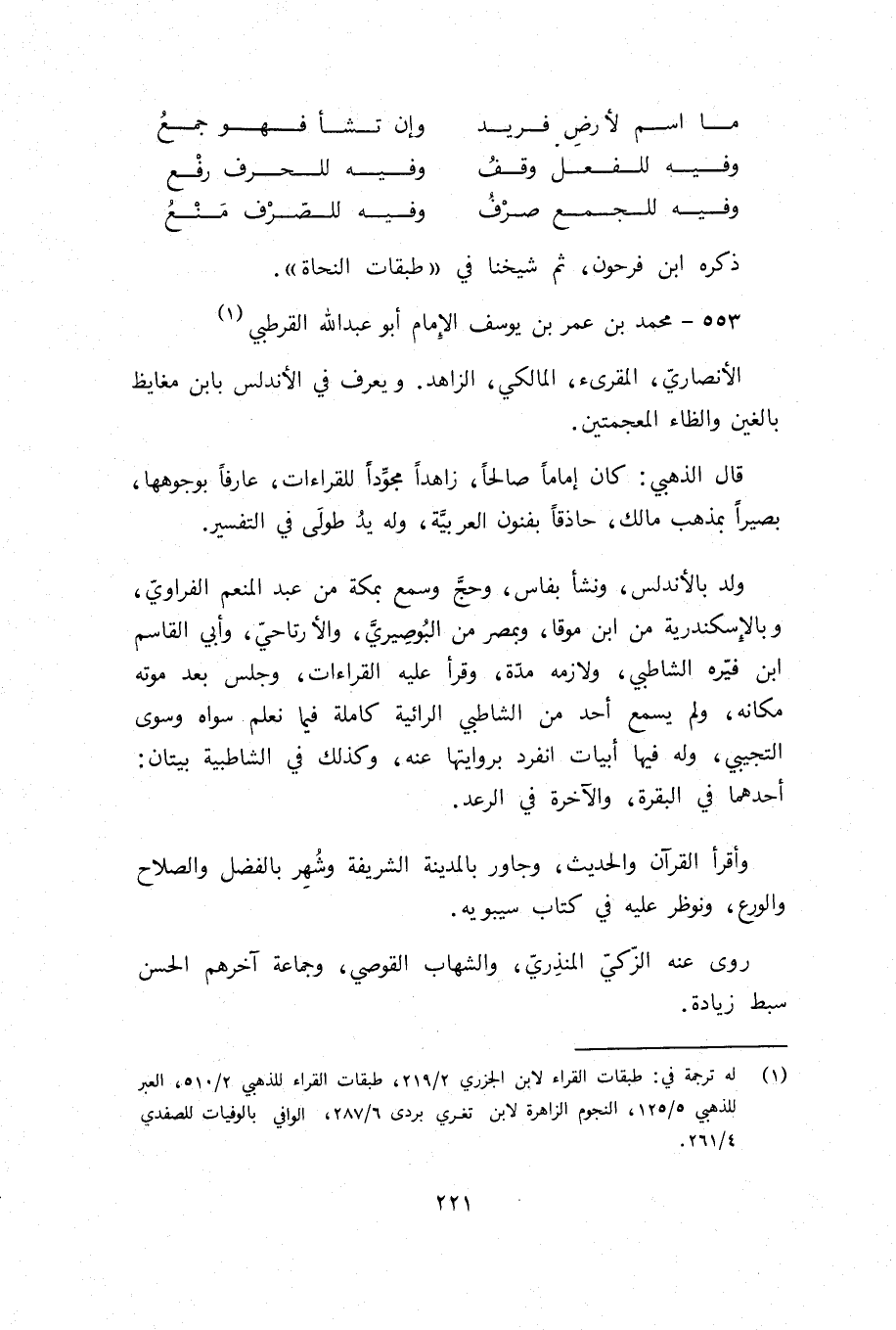 553 - محمد بن عمر بن يوسف الإمام أبو عبد الله القرطبي (¬1) الأنصاريّ، المقرئ، المالكي، الزاهد. ويعرف في الأندلس بابن مغايظ بالغين والظاء المعجمتين.