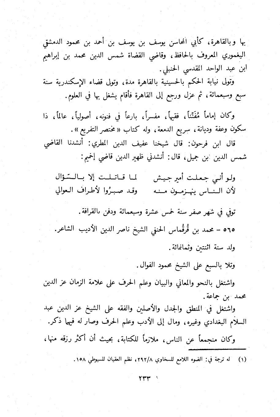 565 - محمد بن قرقماس الحنفي الشيخ ناصر الدين الأديب الشاعر.