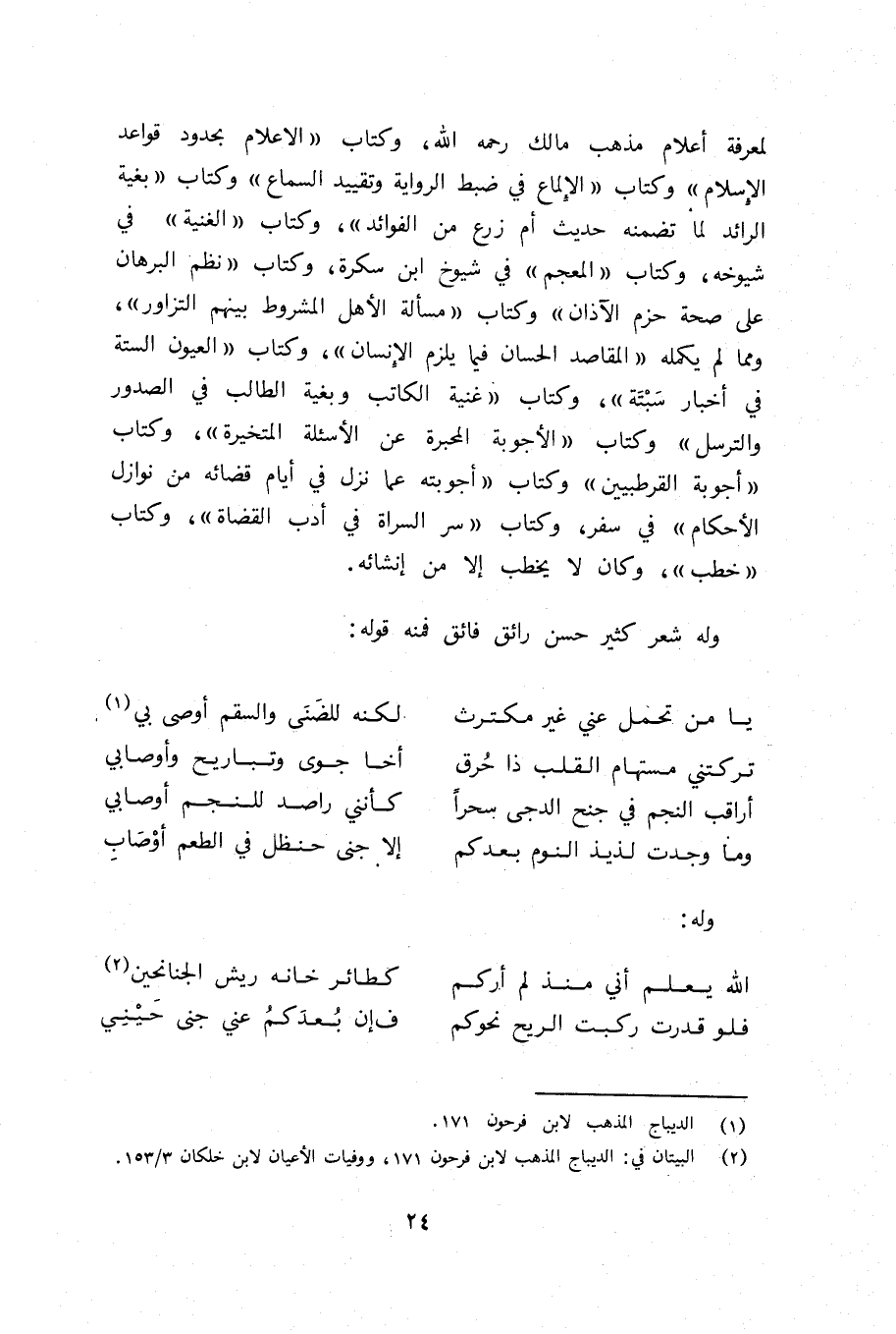 (¬2) البيتان في: الديباج المذهب لابن فرحون 171، ووفيات الأعيان لابن خلكان 3/ 153.