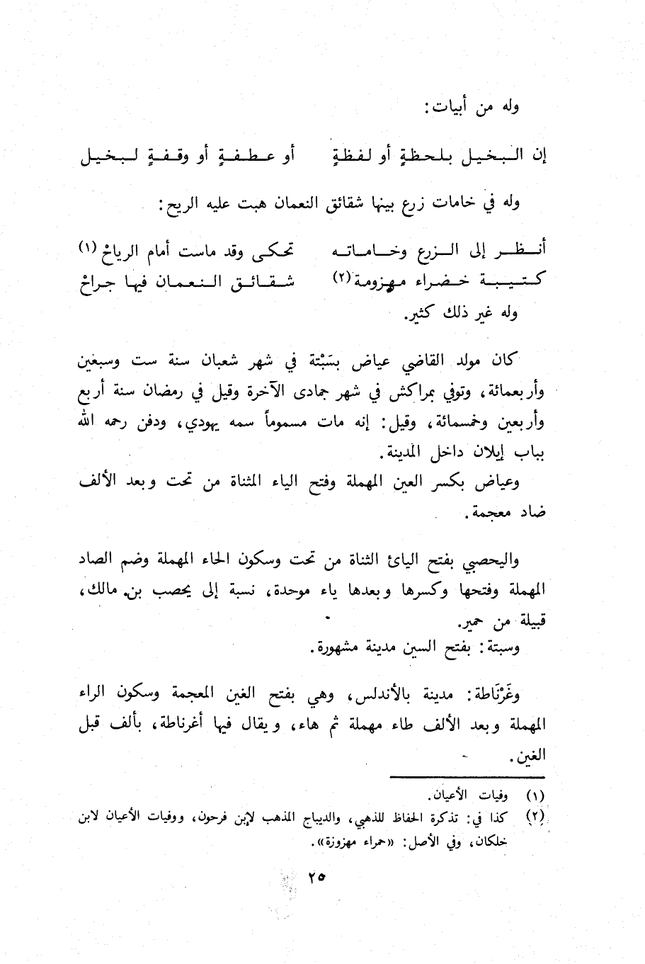 (¬2) كذا في: تذكرة الحفاظ للذهبي، والديباج المذهب لابن فرحون، ووفيات الأعيان لابن خلكان، وفي الأصل: «حمراء مهزوزة».