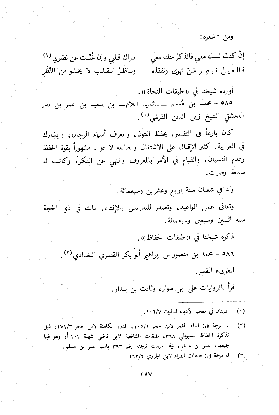 585 - محمد بن مسلم- بتشديد اللام- بن سعيد بن عمر بن بدر الدمشقي الشيخ زين الدين القرشي (¬2).