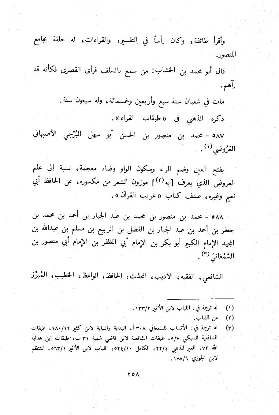 (¬3) له ترجمة في: الأنساب للسمعاني 308 أ، البداية والنهاية لابن كثير 12/ 180، طبقات الشافعية للسبكي 7/ 5، طبقات الشافعية لابن قاضي شهبة 31 ب، طبقات ابن هداية الله 72، العبر للذهبي 4/ 22، الكامل 10/ 524، اللباب لابن الأثير 1/ 563، المنتظم لابن الجوزي 9/ 188.