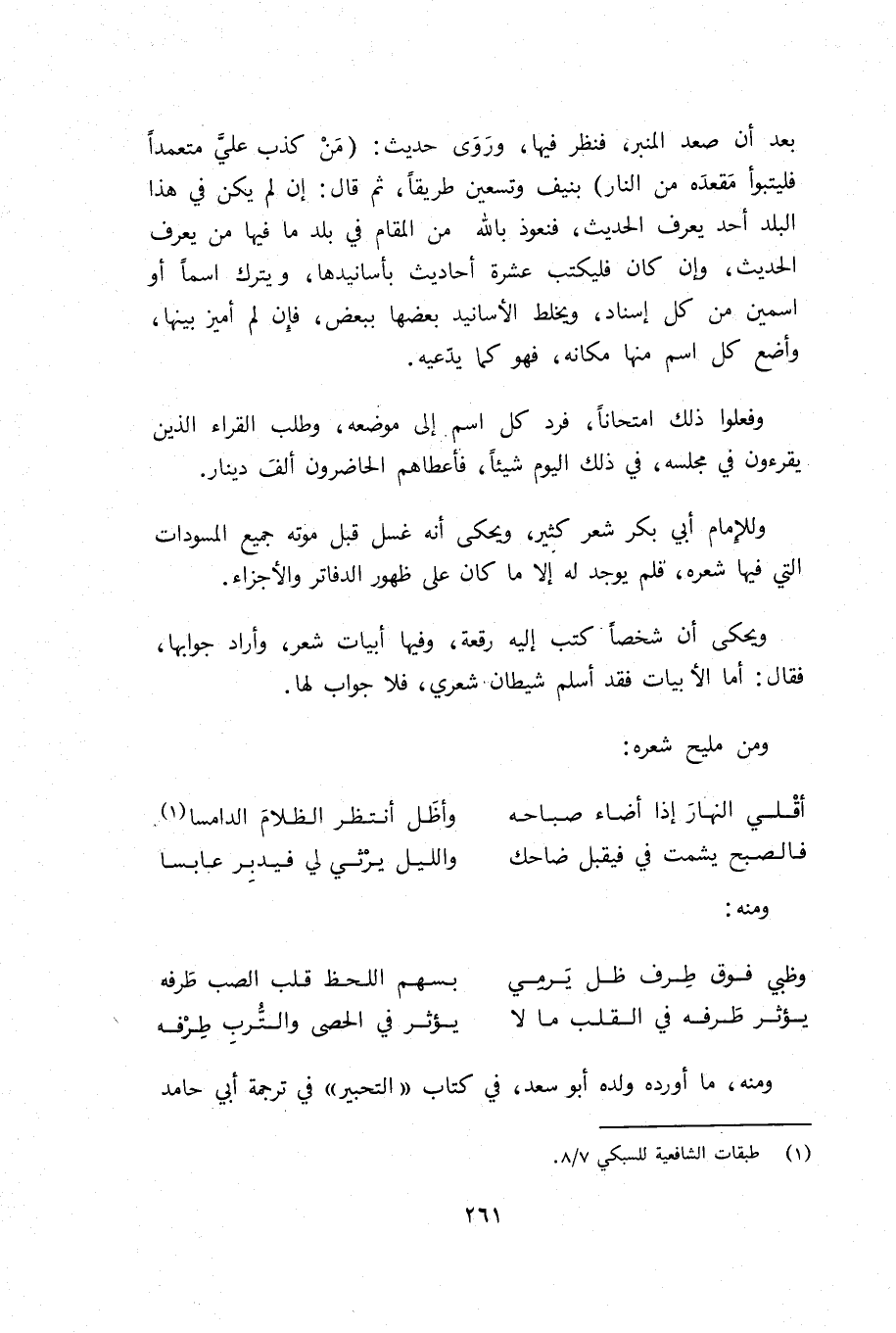 ومنه، ما أورده ولده أبو سعد، في كتاب «التحبير» في ترجمة أبي حامد