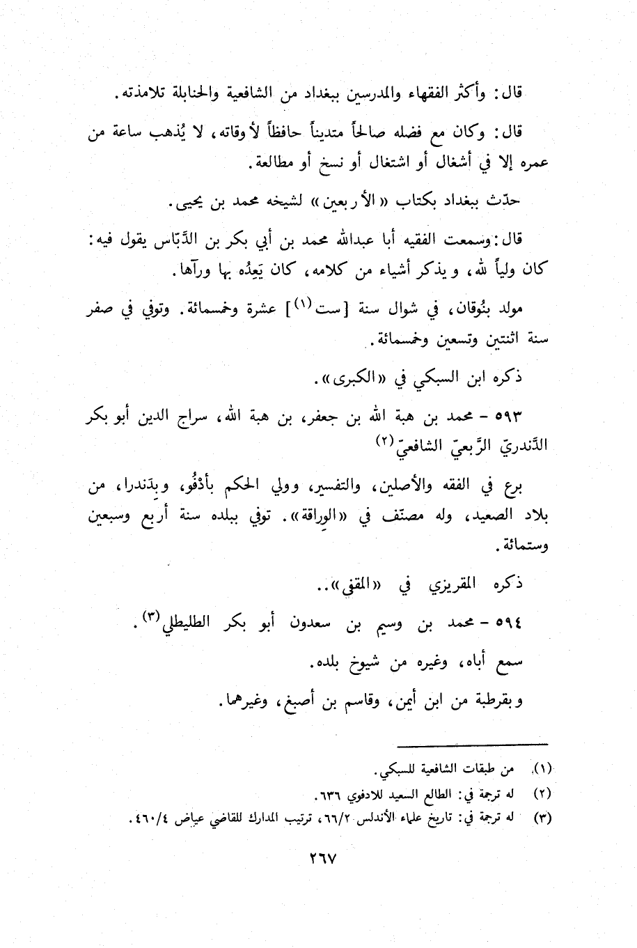 593 - محمد بن هبة الله بن جعفر، بن هبة الله، سراج الدين أبو بكر الدّندريّ الرّبعيّ الشافعيّ (¬2).